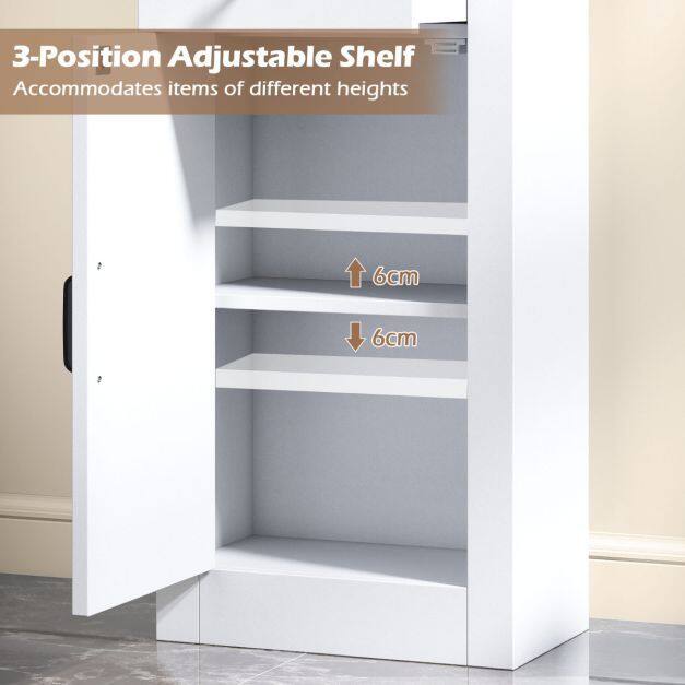 ● Versatile Functionality: The versatile storage unit is designed to excel in compact spaces. Whether used in bathrooms, laundry rooms, kitchens, or living rooms, this cabinet adapts to meet your needs, providing extra storage where you need it most.