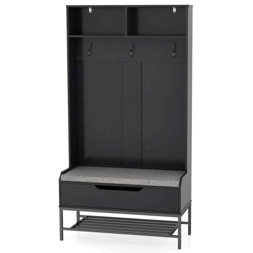 ● Hidden Storage Space: Designed with a hidden storage compartment under the seat, the 4-in-1 entryway bench helps tuck away items out of sight. The lift-up seat board makes items easily accessible, thanks to its convenient cut-out handle, spring hinges and soft closing hinges.
