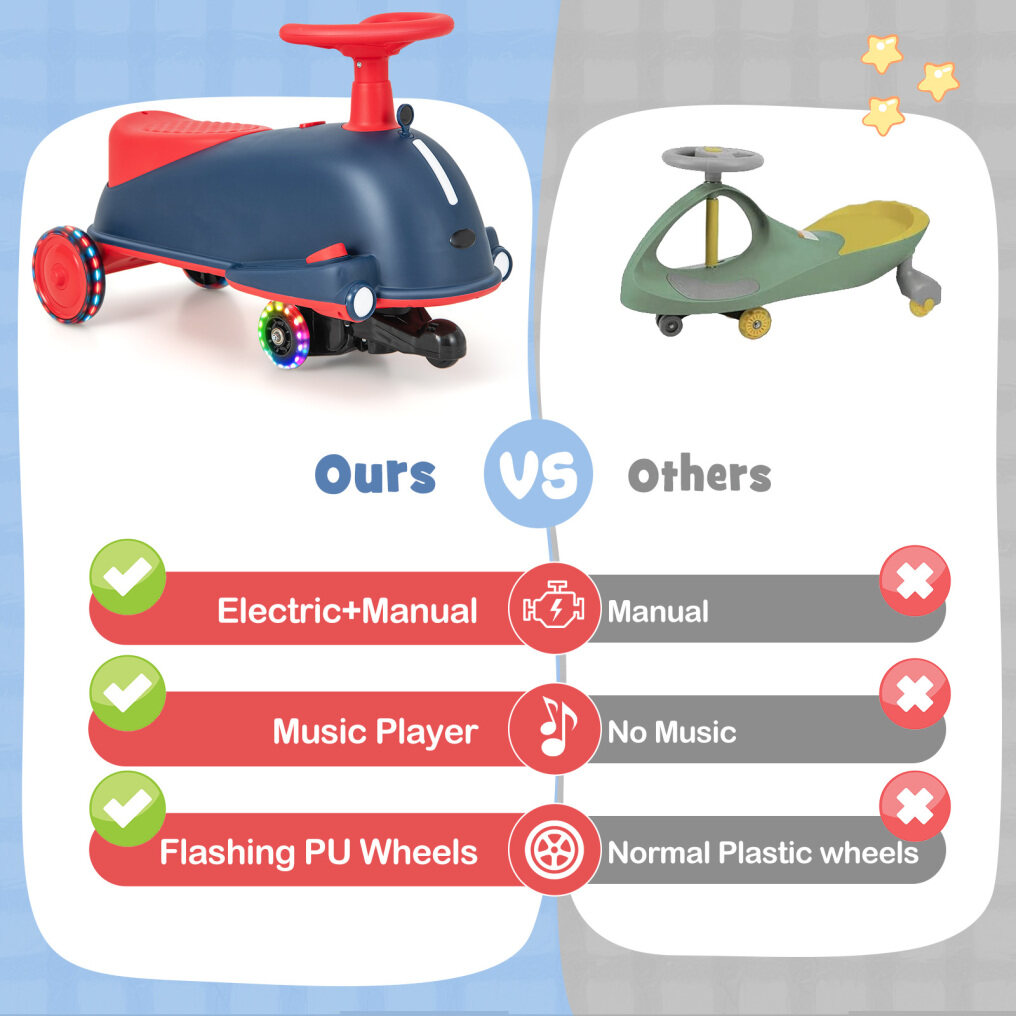 ● 2 in 1 Electric Wiggle Car for Entertainment: Designed with both electric and manual mode, this kid toy car provides endless fun for kids above 3 years old. With a maximum speed of 1.2~3 mph and a load capacity of 66 lbs, your child can enjoy a thrilling yet secure adventure.