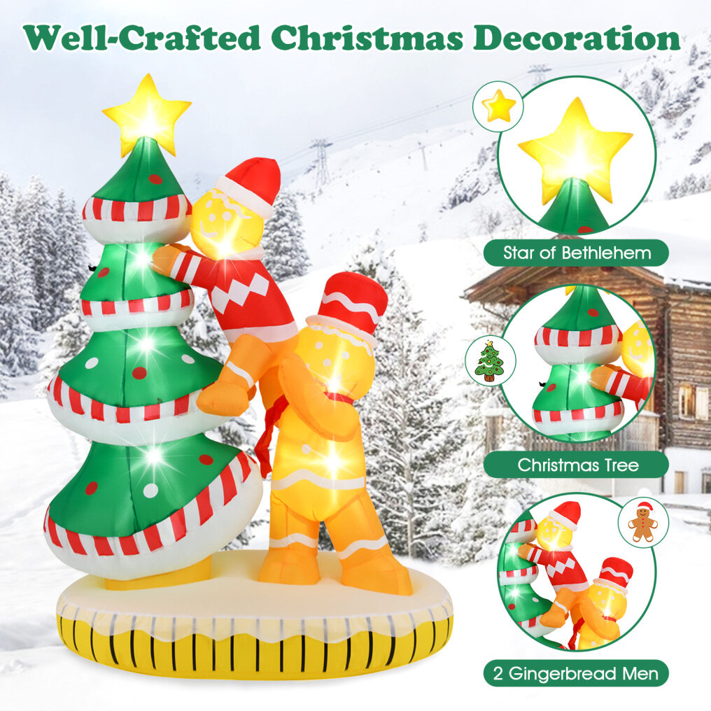 ● Gingerbread Men and Tree Combo: This 7 ft tall inflatable Christmas decoration showcases that 2 Gingerbread men try to climb up the Christmas tree, bringing a sense of festive atmosphere and making the surroundings alive. The star of Bethlehem on the top adds more elegance.