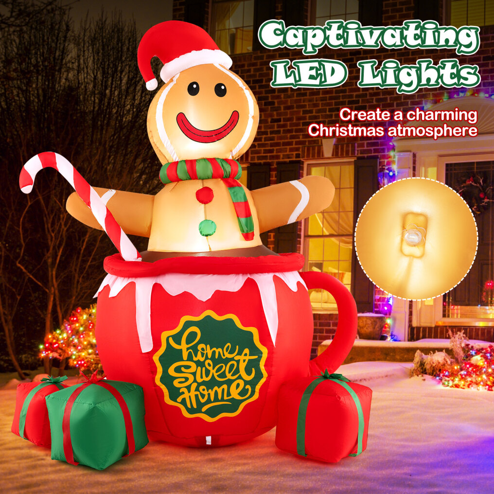 ● Eye-Catching LED Lighting: This inflatable gingerbread man features bright built-in LED lights that bring a lively Christmas atmosphere to your outdoor space. Its captivating glow is sure to capture the attention of anyone who may pass by.