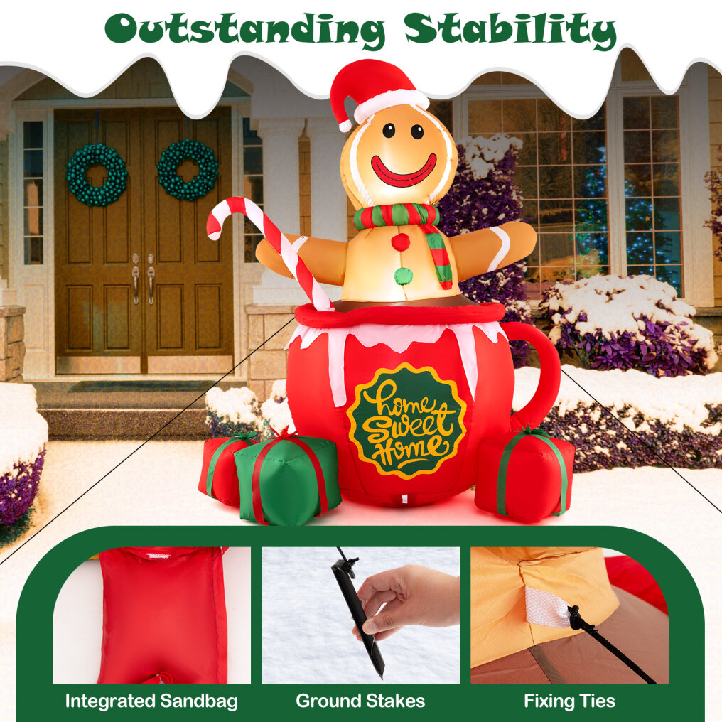 ● Cheerful Holiday Delight: Featuring a gingerbread man holding a candy cane in a hot cocoa mug, this festive display is sure to bring smiles to all at your next party. Perfect for your garden, yard, or lawn, it will create a merry and welcoming ambience for all.