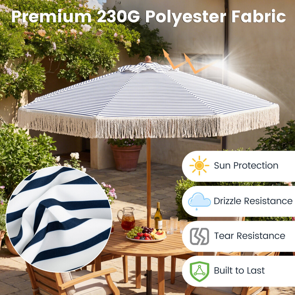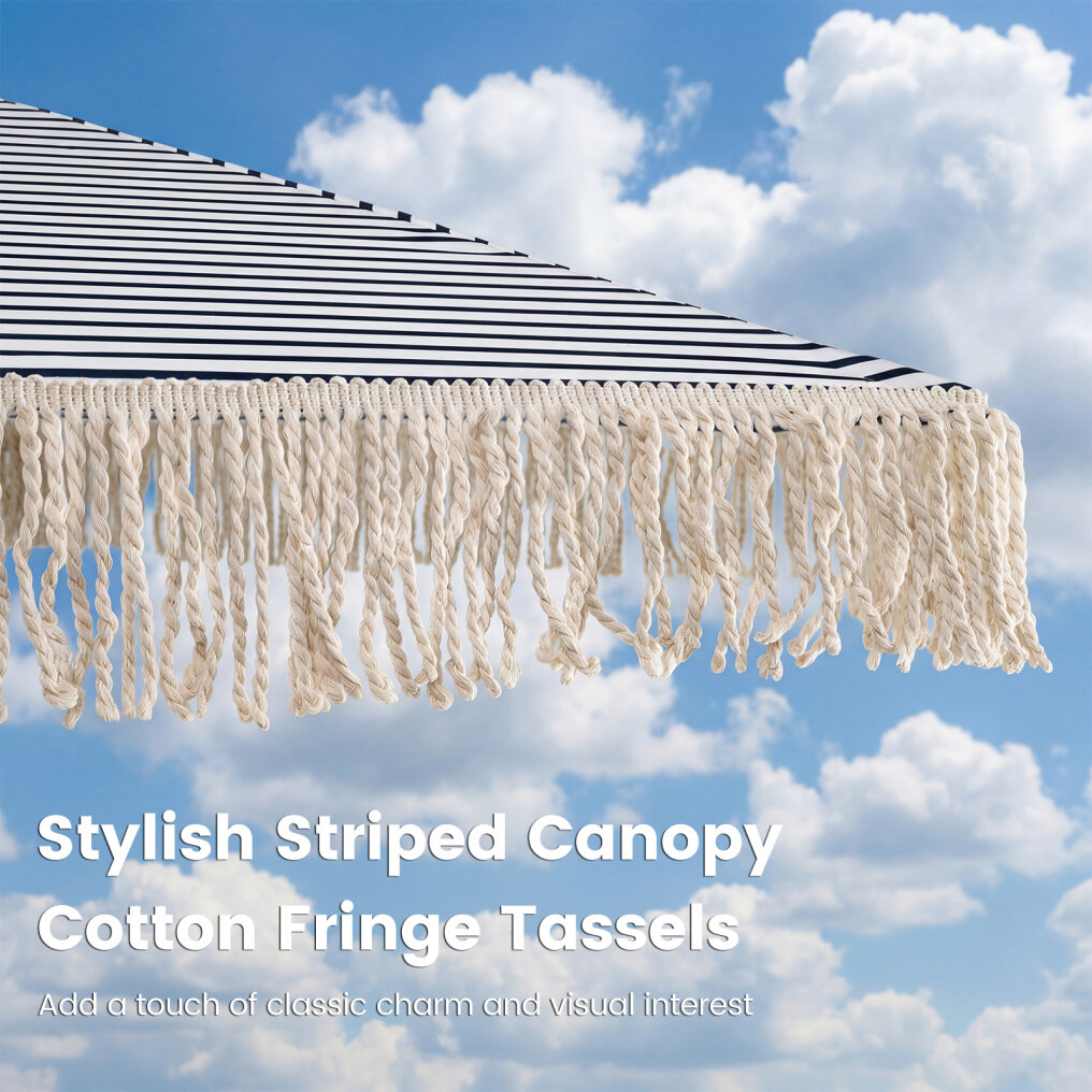 ● Boho Showstopper Design: This cute umbrella features a stylish striped canopy, finished with cotton fringe tassels that dance in the breeze. It could instantly elevate any patio, poolside, or beach day with serious style and major vacation vibes, perfect for Instagram-worthy moments.