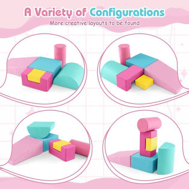 ● 6 Pieces & Free Layouts: The 6 pieces foam blocks for kids consists of a large rectangle, wedge, cylinder, half-moon, concave and small rectangle. A variety of configurations are available, such as horizontal and vertical stacking. And there are more creative layouts to be found.