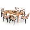 ●Enjoy Leisure Time Together: With appealing look and high functionality, this 7 piece outdoor wood dining set is perfect for family or friend gatherings in backyard, poolside and so on. Dimension of table: 67” x 35” x 30” (L x W x H). Dimension of chair: 22.5” x 23” x 34” (L x W x H) HW72104