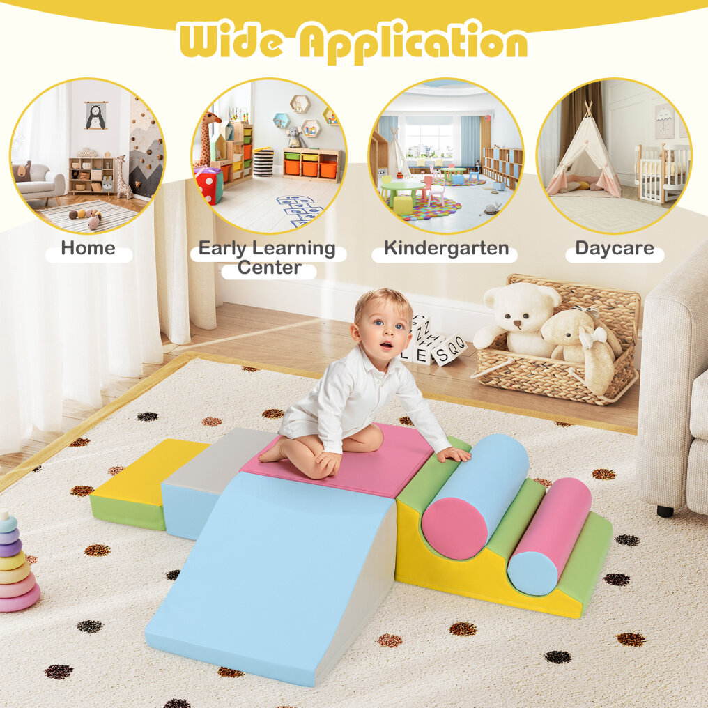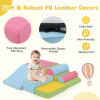 Featuring 7 pieces in various shapes like rectangles, triangles, and half-cylinders, this set encourages creativity and imagination with its modular hook-and-loop fastener system. The blocks are filled with EPE to ensure comfortable and safe play, with a soft faux leather cover to protect little ones' skin. Perfect for developing skills like balance and coordination, these lightweight, stackable blocks are ideal for home spaces, daycares, or early education centers. An ideal gift to encourage healthy and joyful development in young children.