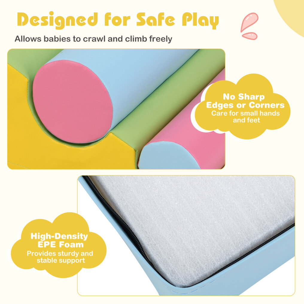 Creative and Educational Stimuli: Enjoy watching your children climb, crawl, and slide on these colorful blocks, keeping them entertained for hours while developing essential skills such as balance, motor coordination, and color recognition. A great way to combine fun with physical and intellectual development.