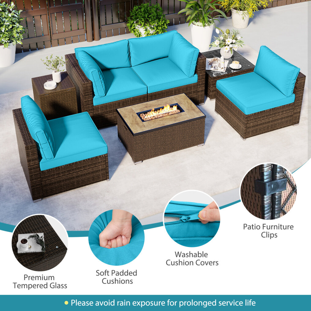 ● Flexible Layout Options: This patio sectional set includes 1 fire pit table, 1 tank cover table, 1 coffee table, 2 corner sofas and 2 armless sofas, allowing for free combination. Create the perfect layout for your space, whether you’re hosting a large gathering or enjoying a quiet evening with loved ones.