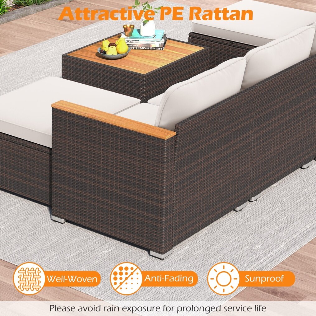 pe rattan, metal, acacia wood, polyester, sponge |