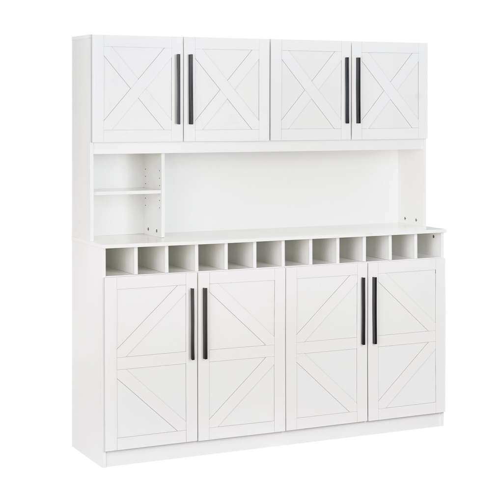 ● Flexible Storage & Added Convenience: Two 6-position adjustable shelves are included to offer customizable storage for items of various heights. This kitchen hutch also features 12 wine bottle storage compartments, allowing you to showcase your favorite vintages conveniently.