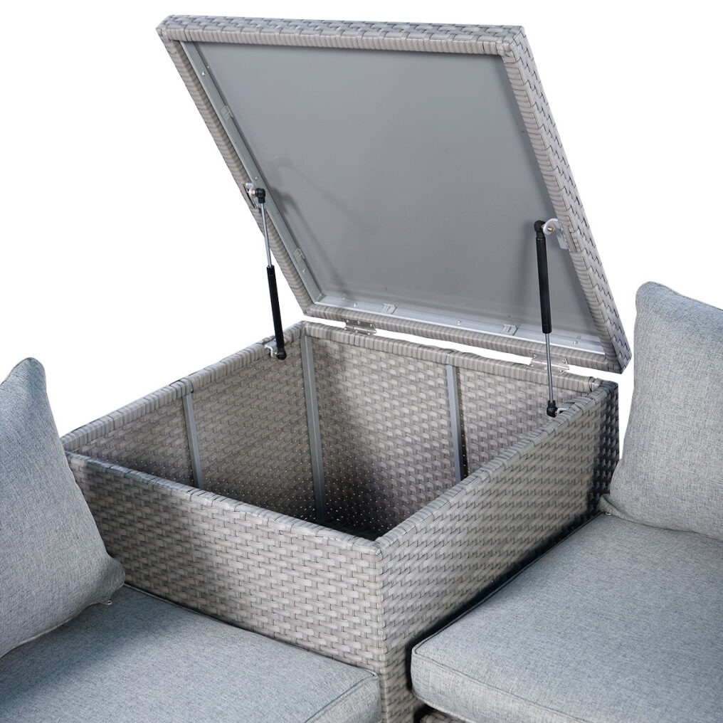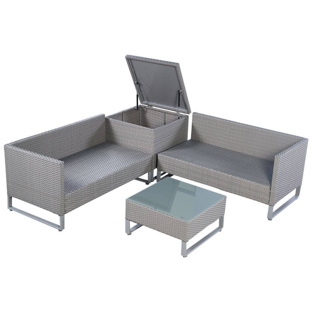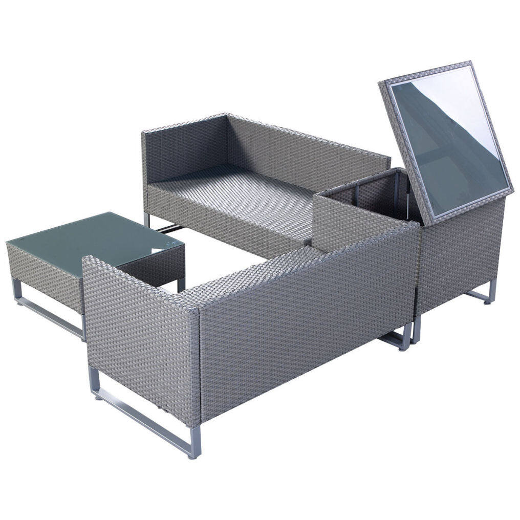 Compact & Practical: The outdoor wicker set includes 2 loveseat sofa, 1 coffee table and 1 storage box. Compact and simple design. You can storage the cushions in there when the set is idle, and also can storage the toys or daily supplier in the box in summer days. Storage box comes with a waterproof inner cover. It's no need to worry about the items in the box even in rainy days.