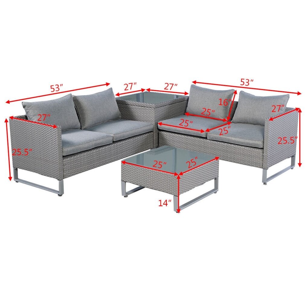 Installation & Size: With our manual it's easy to assemble. All hardware and tool are included in the box. Size of loveseat: 47.5" x 26" x 26"(L x W x H), Size of storage box: 26" x 26" x 26"(L x W x H), Size of coffee table: 22" x 22" x 13"(L x W x H)