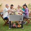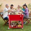 This75L patio cooler offers enough room to store a variety of drinks for all your guests, making it an essential addition to any outdoor BBQ or party. The efficient insulation system enables it to keep cool for 48 hours and warm for 12 hours. The bottom shelf provides additional space for snacks or other party essentials. Designed with mobility in mind, this beverage cooler features 4 universal wheels (2 with brakes) and 2 side handles for easy movement around your patio or garden. Additionally, it comes with a convenient bottle opener, a cap catcher to maintain a clean area, and a drain plug for easy cleaning and water removal.