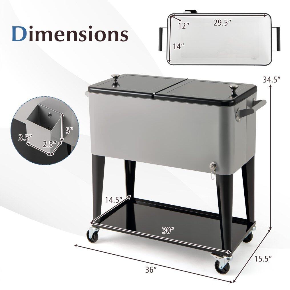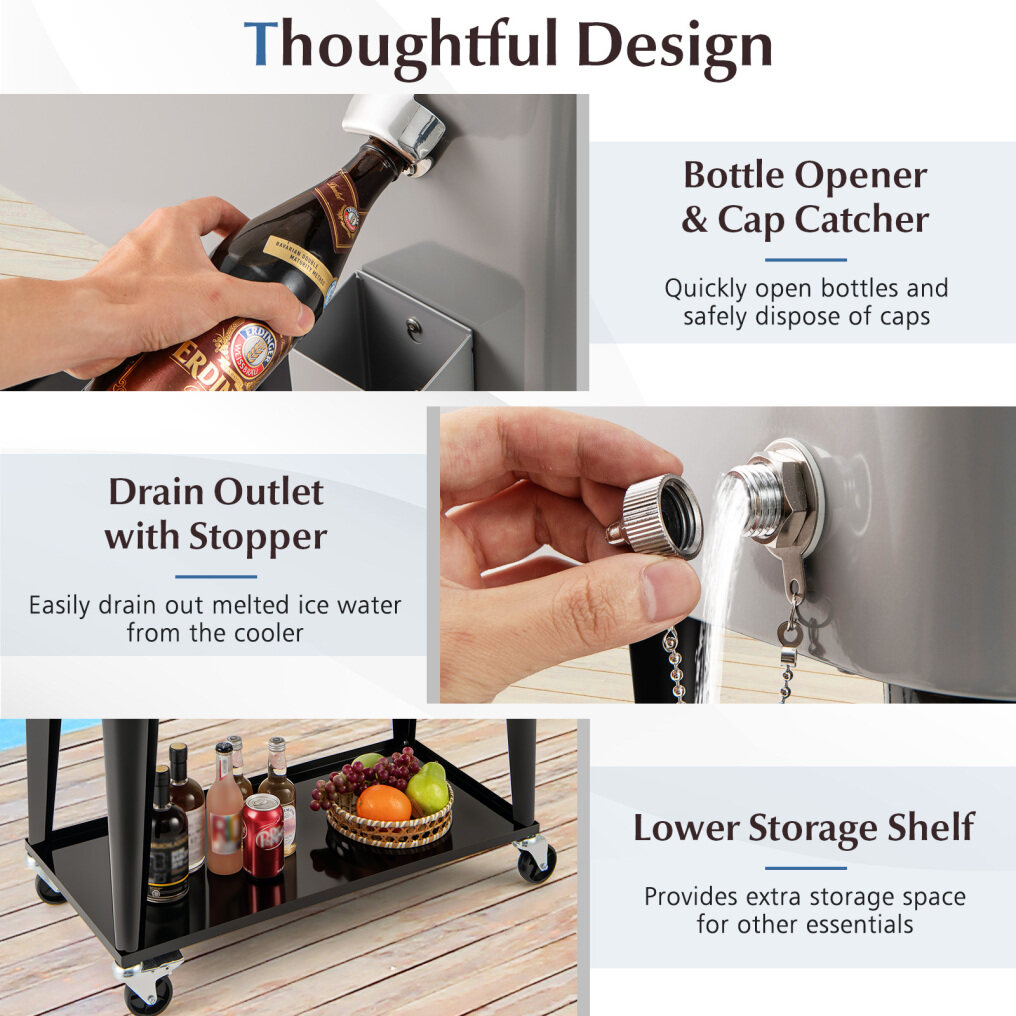 Added Bottom Shelf: Not just for cooling beverages, this patio drink cooler cart boasts a convenient bottom storage shelf. It provides extra storage space for other supplies while making it quick and easy to access what you need.