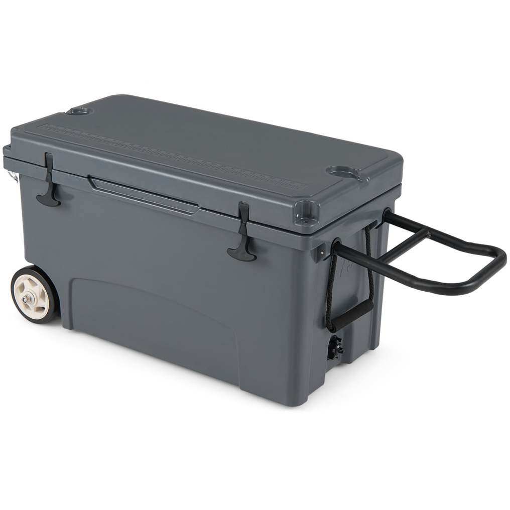 ● Enhanced Mobility & Portability: With 2 swing-up handles, an integrated pull handle and 2 all-terrain PU wheels, you can effortlessly roll or carry the ice chest wherever you go, making it the ultimate companion for outdoor enthusiasts.