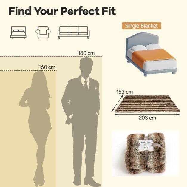 ● Versatile Everyday Use: Designed for busy modern lifestyles, the faux fur throw blanket is perfect for various settings - use it on your armchair, bed, sofa, or even in your car. It is anti-fading, OEKO-TEX certified, and stays beautiful and fresh with minimal care.