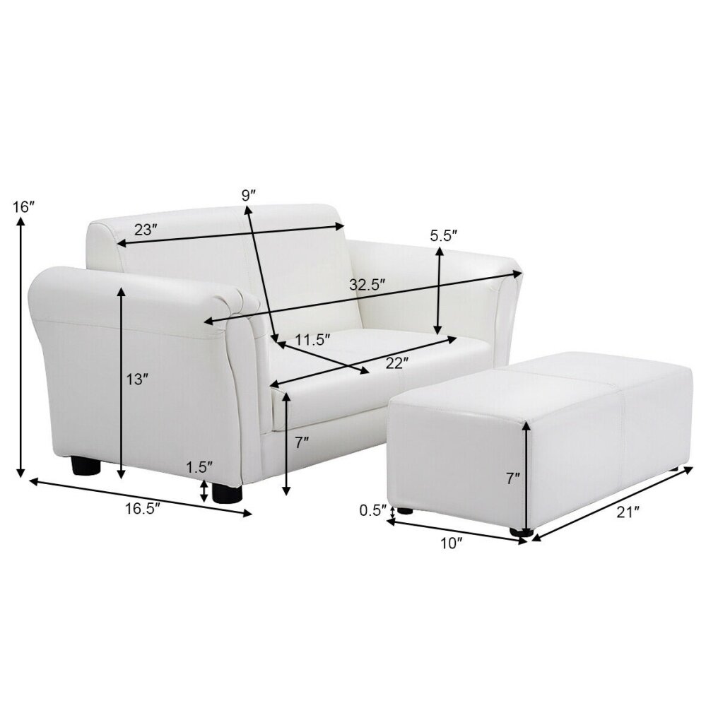 Perfect Gift for Boys and Girls: This adorable 2 seat sofa set with ottoman is a perfect present for your little ones. The smooth and shiny leather surface gives this sofa an elegant and sophisticated feel. Moreover, this sofa set will create an appealing and comfortable place for kids to watch TV, read books, eat snacks, play or just relax.