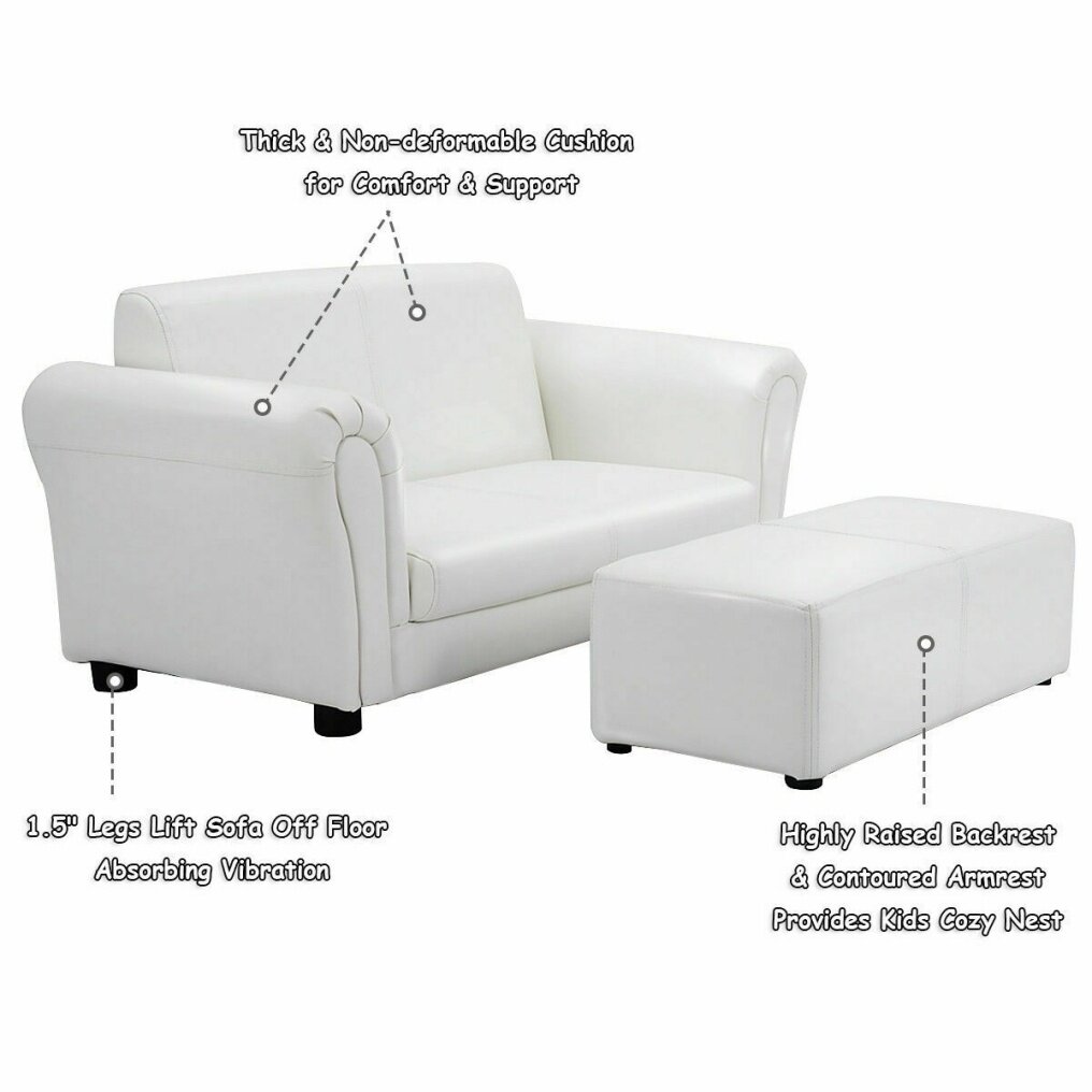 Comfortable Loveseat with Ottoman: Upholstered with thick cushions which are filled with high-resilience 20D sponge, this 2 seat sofa can provide your kids a super comfy place to sit or lounge on. In addition, extra footstool is included to provide strong support for your children's legs, allowing the whole body to relax.
