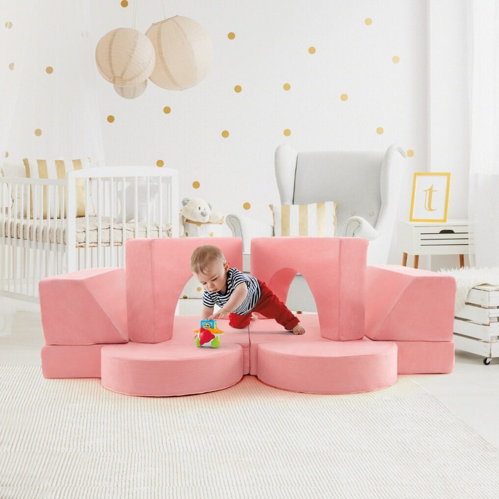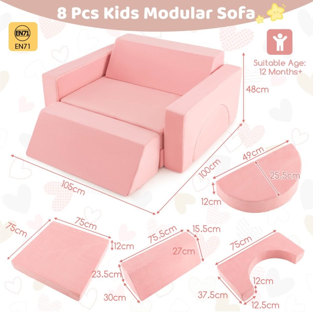 ● 8 Pieces Design and Multiple Interesting Combinations: This kids modular sofa includes 2 square cushions, 2 trapezoidal cushions, 2 semicircular cushions and 2 arched cushions. Kids can freely combine the cushions into a recliner, an arch, a castle and many other creative shapes based on their imagination.