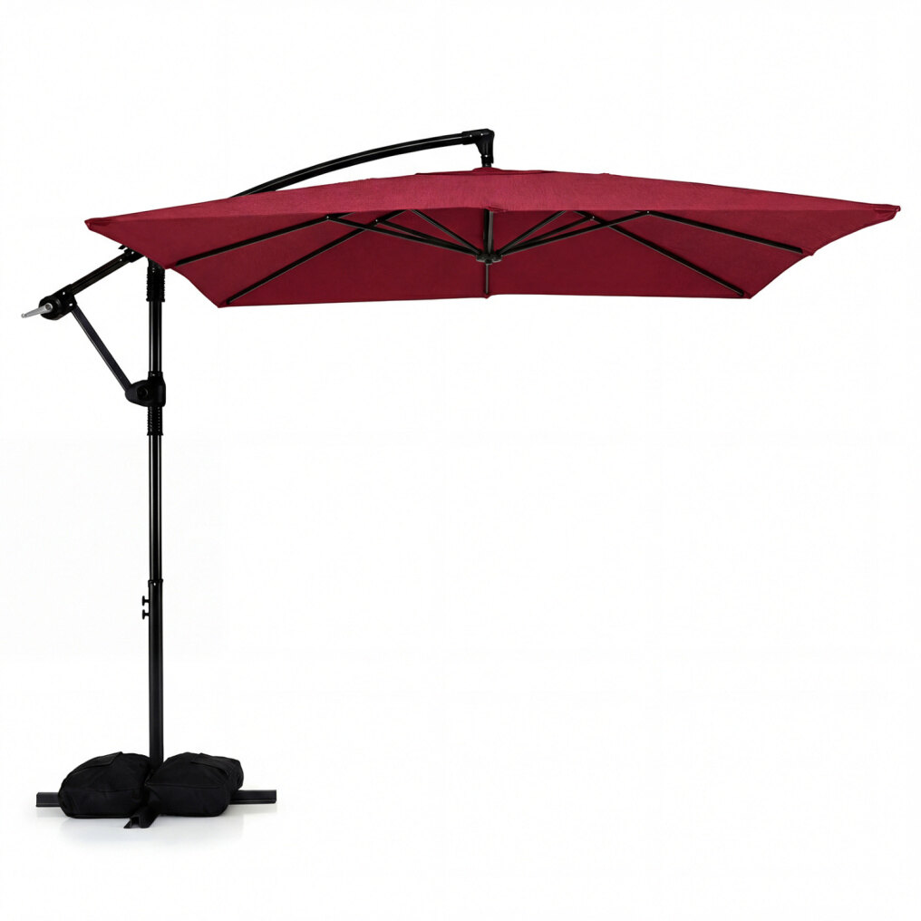 ● Enhance Stability for Your Safety: To keep you anchored and safe, this offset patio umbrella comes with 2 sandbags that could fill up to 116 lbs, securing the crossed base. And the top air vent design effectively reduces wind pressure and enhances stability.