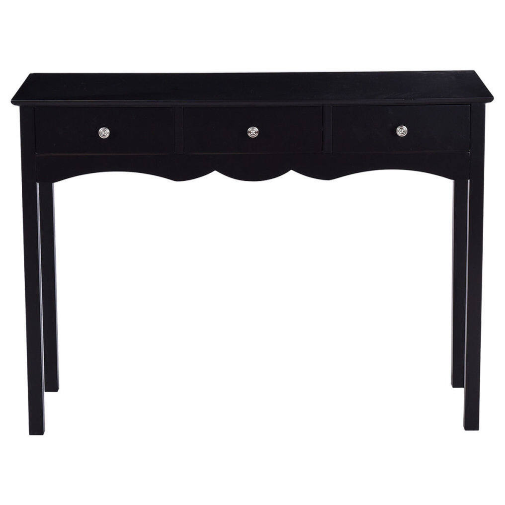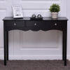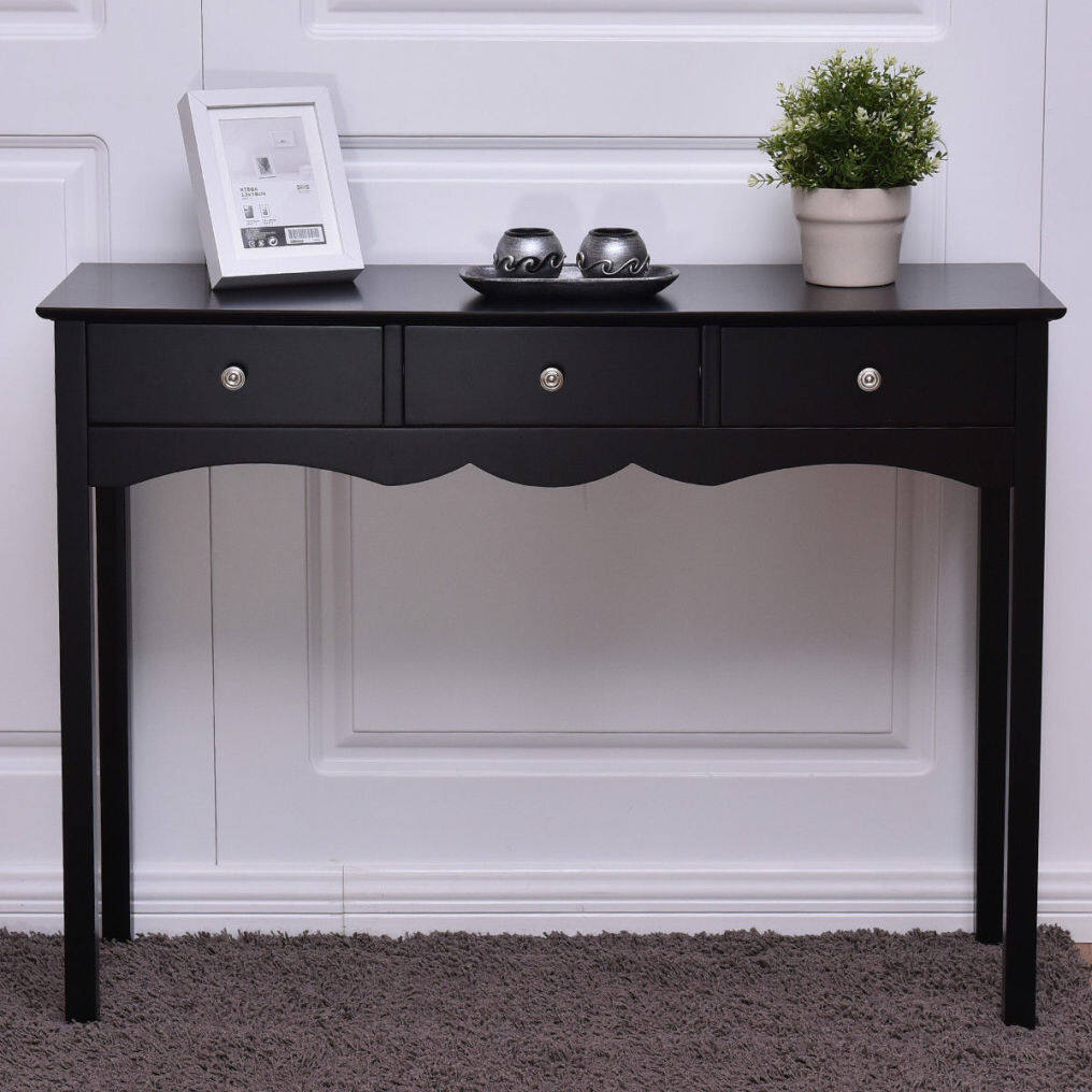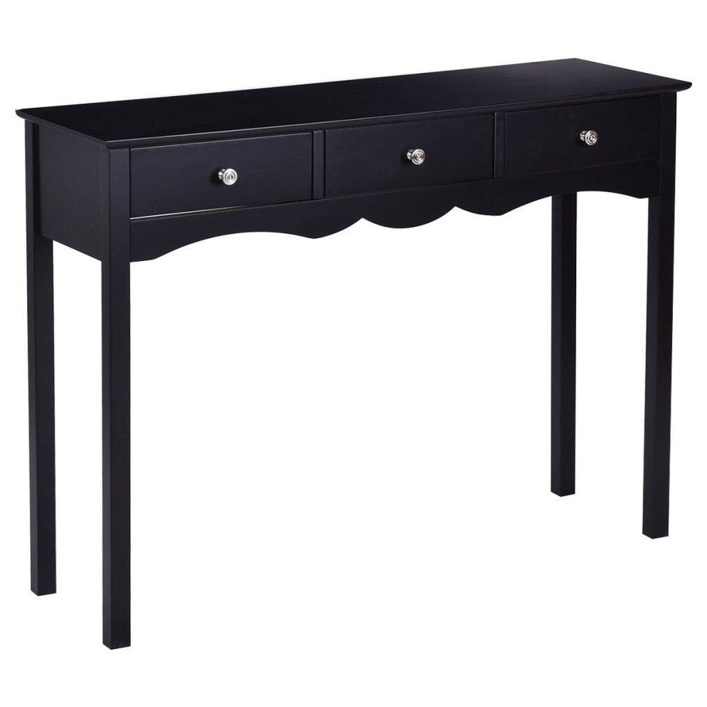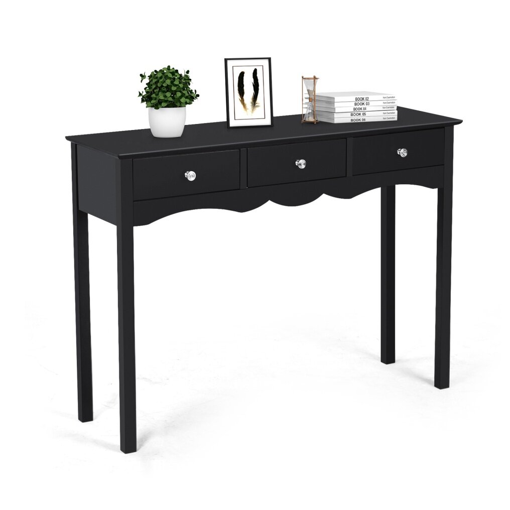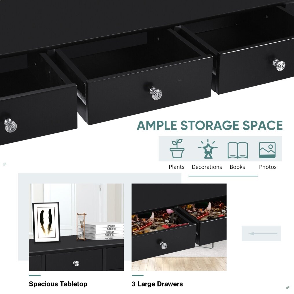 ● Spacious Tabletop and Three Drawers:  The tabletop of the square console table offers spacious space for storing or displaying your stuff. Three drawers are wide and deep enough to provide sufficient room for putting inside your private stuff or any other things you like. A high-quality sliding roller enables drawers to run smoothly. Metal handle in the front of drawers brings you much convenience for pulling out or pushing in the drawers.