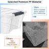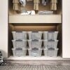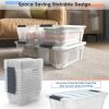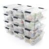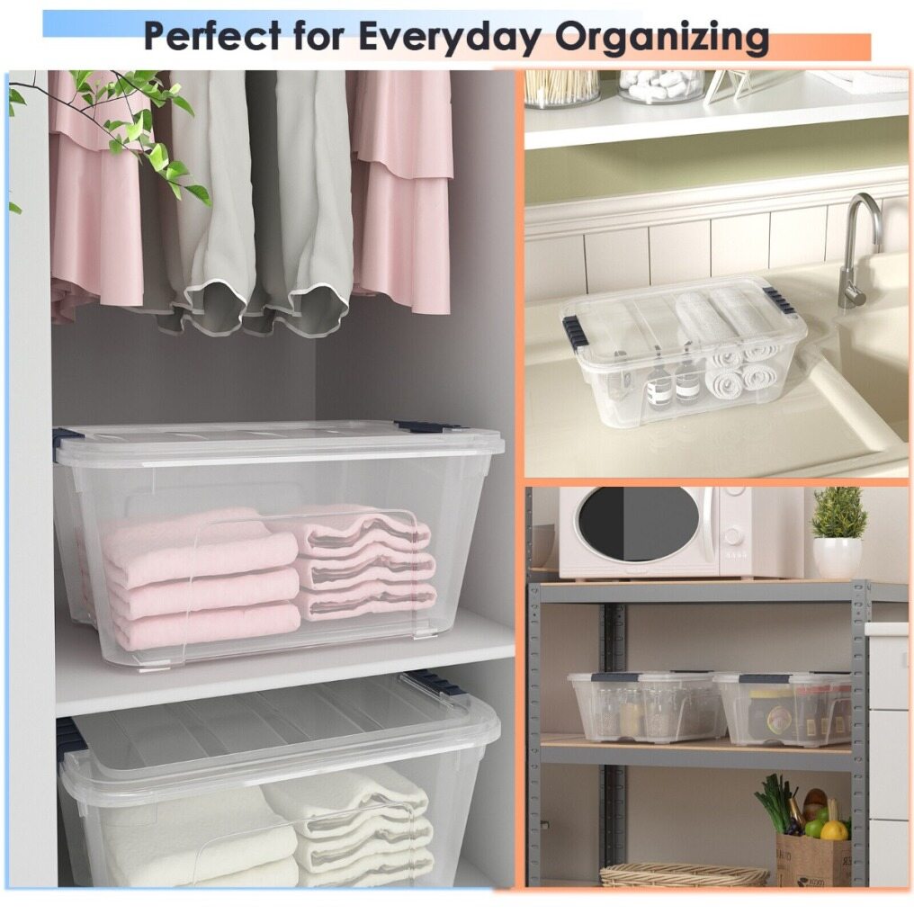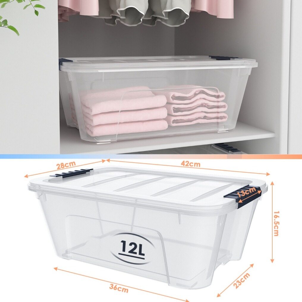 Transparent design makes you easy to see stuff inside and is convenient for you to accurately find things you want. Two grooves and built-in handles help you easily lift boxes or remove them from shelves. The transparent lid snaps firmly onto the base to keep contents contained and secure. 12 PCS plastic storage tote boxes can be neatly stacked, which maximizes storage space. It will be worth purchasing for you and your family!