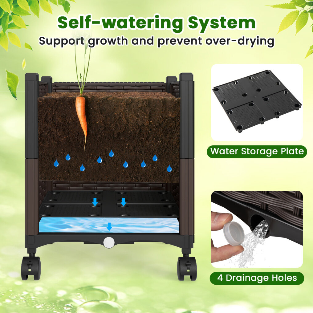 ● Effortless Movement for Indoor and Outdoor Use: Equipped with 4 lockable wheels that could flexibly swivel 360°, this garden bed can be moved easily across various surfaces, making it ideal for both indoor and outdoor settings, whether in your garden, patio, balcony, or greenhouse.