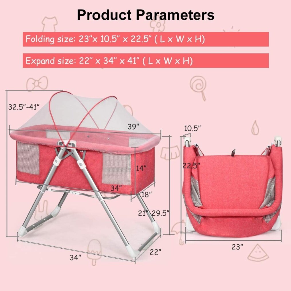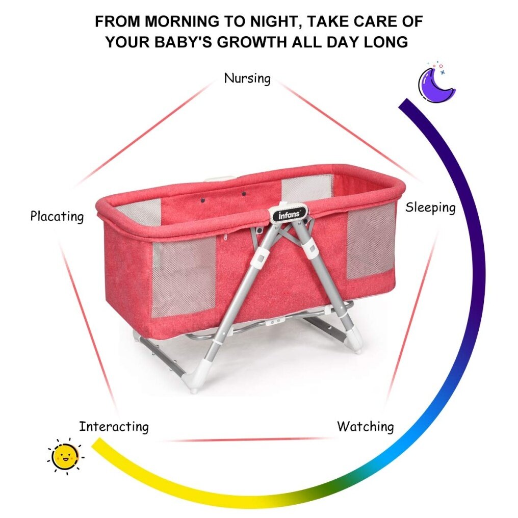 It is not only a travel cradle, but also a portable crib. We use high strength aluminum alloy bracket as the main construction for our rocking bassinet which makes it safer and durable for long time daily use. And the bassinet is easy to fold with the portable design. The special arc leg design also makes our bassinet changeable into swing bed mode and sturdy bed mode according to your different needs. The baby bassinet include a scientific design that the breathable mesh is placed in four corners of the crib and your baby can breathe fresh air no matter which way his head is turned when he is sleeping. The detachable and washable fiber also makes it easy to clean and maintain.