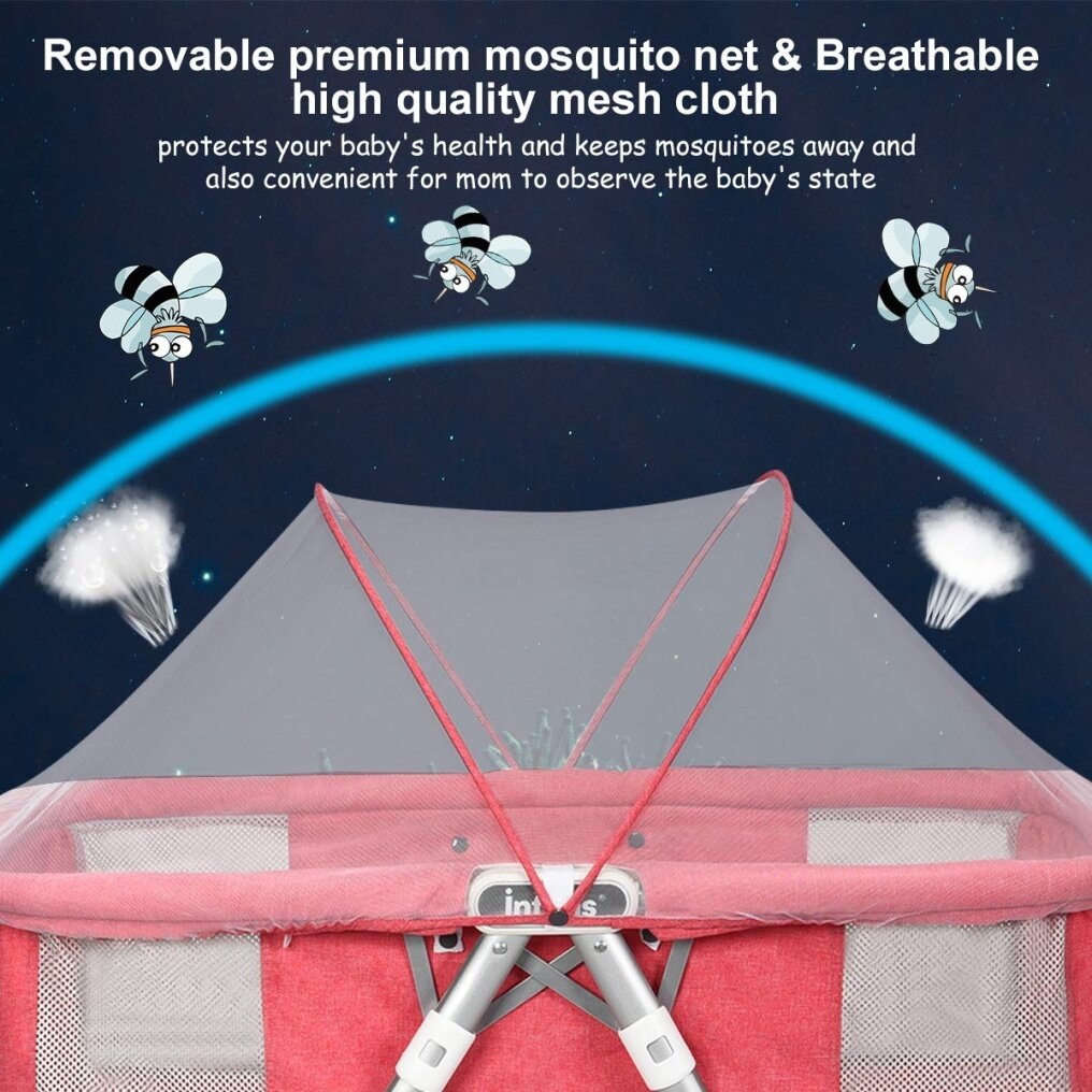 - Removable mosquito nets protect the baby from mosquito bites