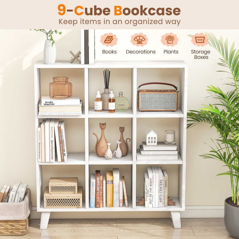 ● DIY Storage Flexibility: The 9-cube bookcase features 6 removable shelves, providing a versatile storage solution. This allows users to customize the storage space, making it perfect for various item sizes and organizational preferences.