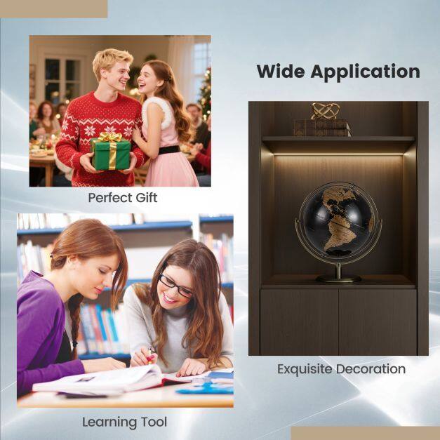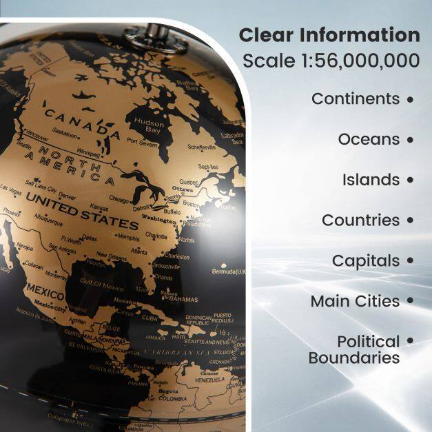 ● Educational and Stylish Addition: This metallic black world globe doubles as a dynamic learning tool and an exquisite decoration. Its modern, sleek design seamlessly fits into various interiors, while encouraging exploration and learning for all age groups.