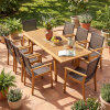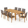 ● Flexible Gathering Space: This premium 9-piece outdoor dining set includes 8 ergonomic chairs and a versatile table. It effortlessly expands from 55 to 71 inches in length. You can perfectly accommodate all 8 guests for intimate family dinners or large backyard gatherings.