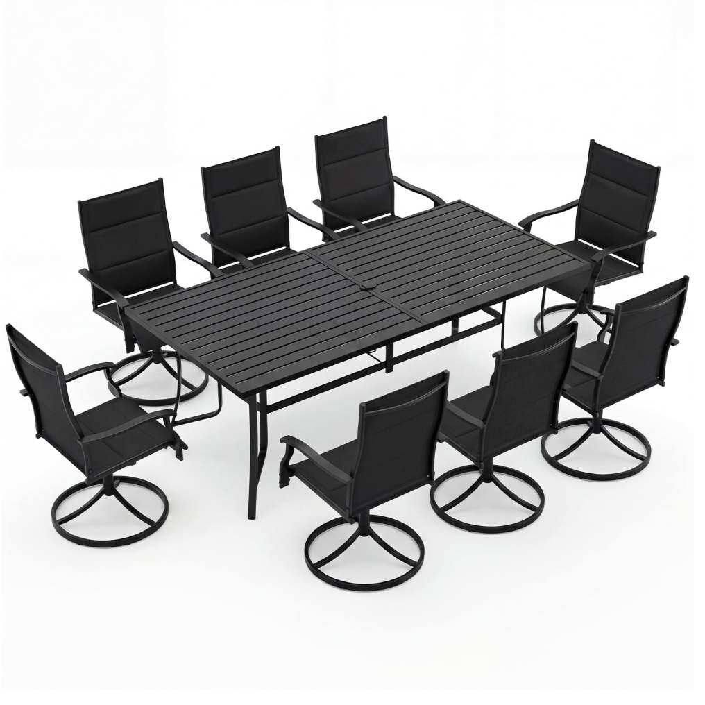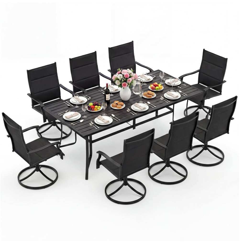 ● Outside Patio Table Set for 8: This outdoor dining set perfectly accommodates up to 8 people, making it an essential element for your family gatherings or friend parties. The 76” x 36” large tabletop offers ample space for dining, playing games or relaxing in a sizable group, ensuring interactions remain comfortable and engaging.