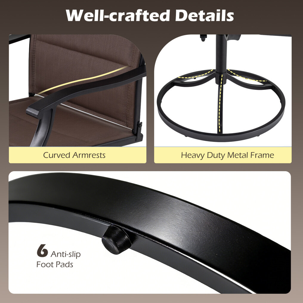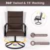 High-Quality 360° Swivel Seat: Each swivel chair features a 360° swivel and a 15° rocking motion, allowing you to relax in style. The ergonomic high back and the curved armrests are designed to reduce fatigue during prolonged seating, while the soft padding and breathable fabric promote enduring coziness and coolness.