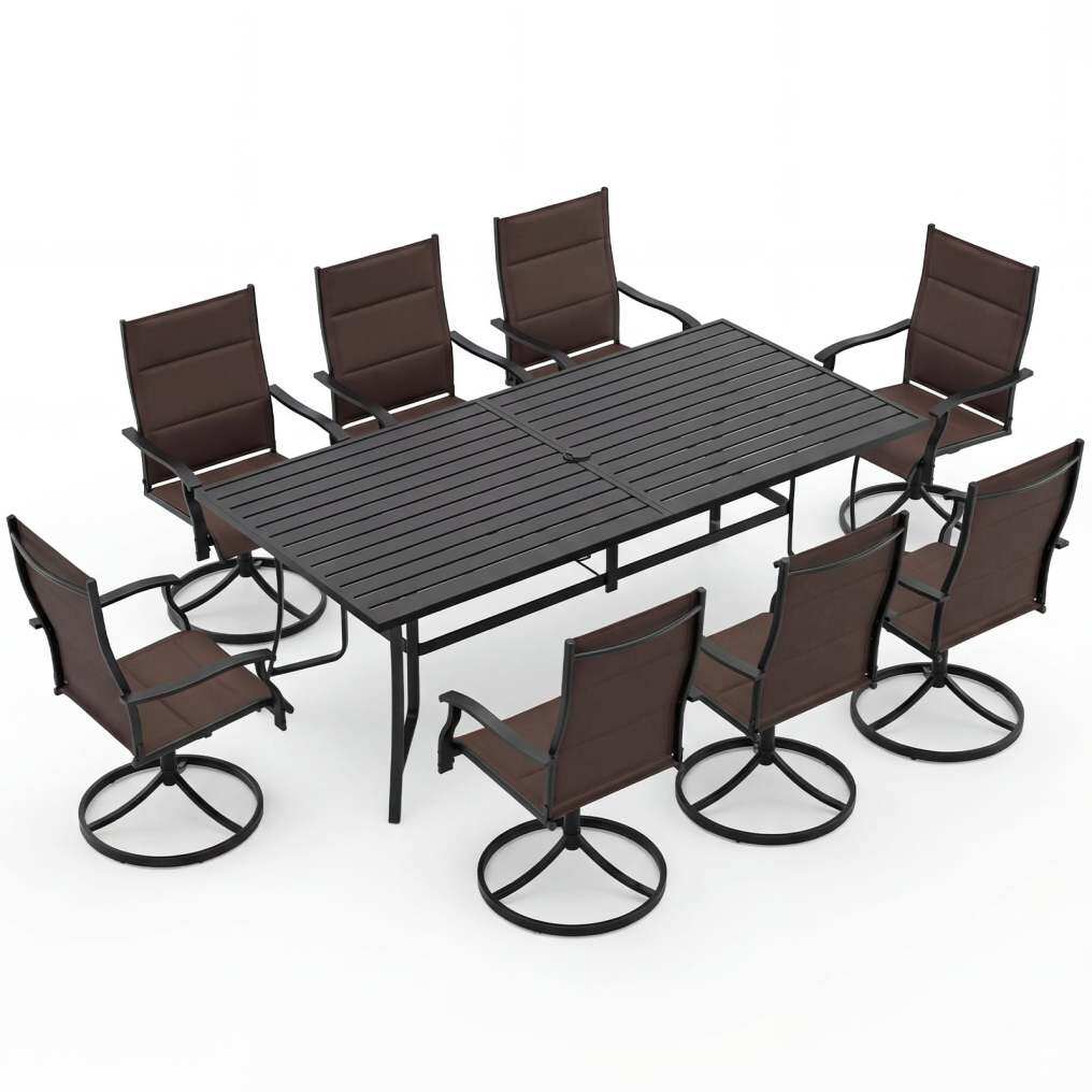 9-Piece Outdoor Dining Set for 8 with Umbrella Hole and 8 Chairs-Brown