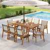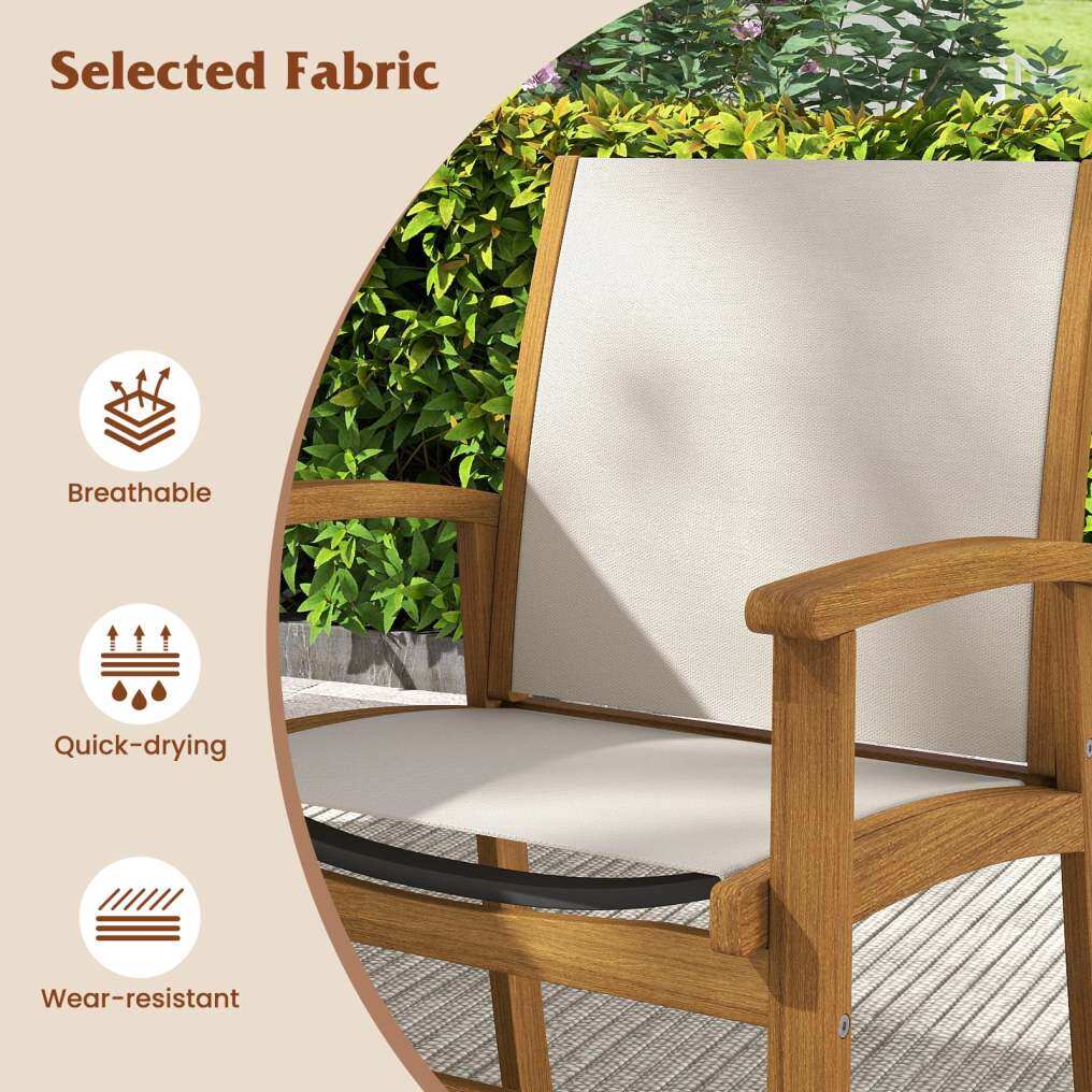 ● Solid Acacia Wood: This patio dining set is built with solid acacia wood, renowned for its exceptional strength and reliability. The dining table can support a maximum load of 330 lbs, while each chair can handle up to 400 lbs. Please regularly oil the wood surface for optimal maintenance.