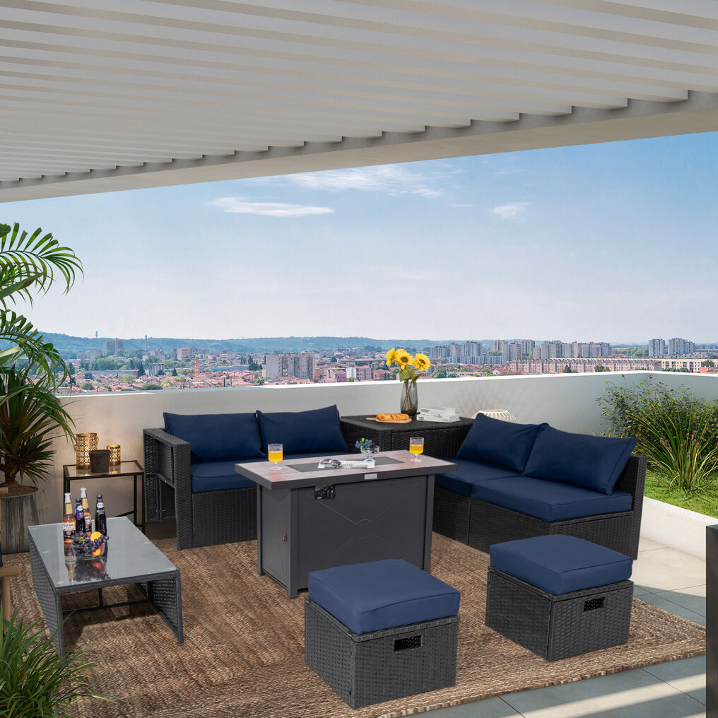 pe rattan, steel, tempered glass, polyester, foam, pvc, ceramic |