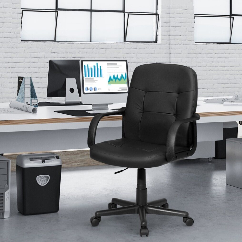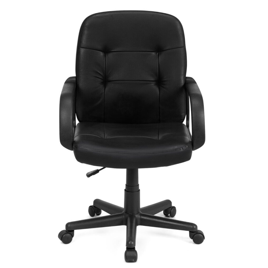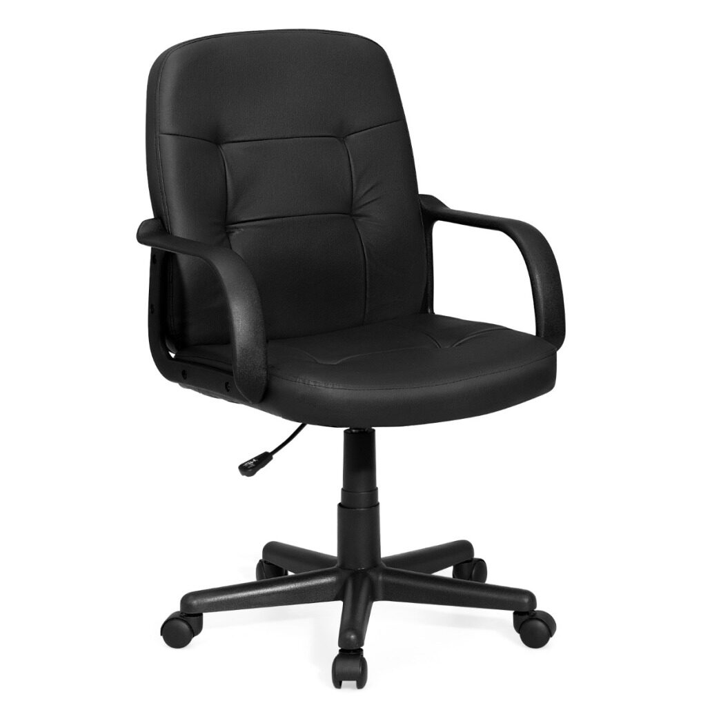 The ergonomic back design fits your body perfectly and relieves your fatigue of prolonged sitting. Soft cushion filled with high-density sponge offers you super comfort. Premium PVC surface is waterproof and durable, which is easy to clean. In addition, adjustable height (ranging from 89cm-99cm) and 360°swivel satisfy users’ different needs. The five carpet casters allow you to move the chair easily and effortlessly. Apart from that, modern appearance makes it suitable for home, office, reception center and internet cafe. It is easy to assemble. Don’t hesitate to buy it!