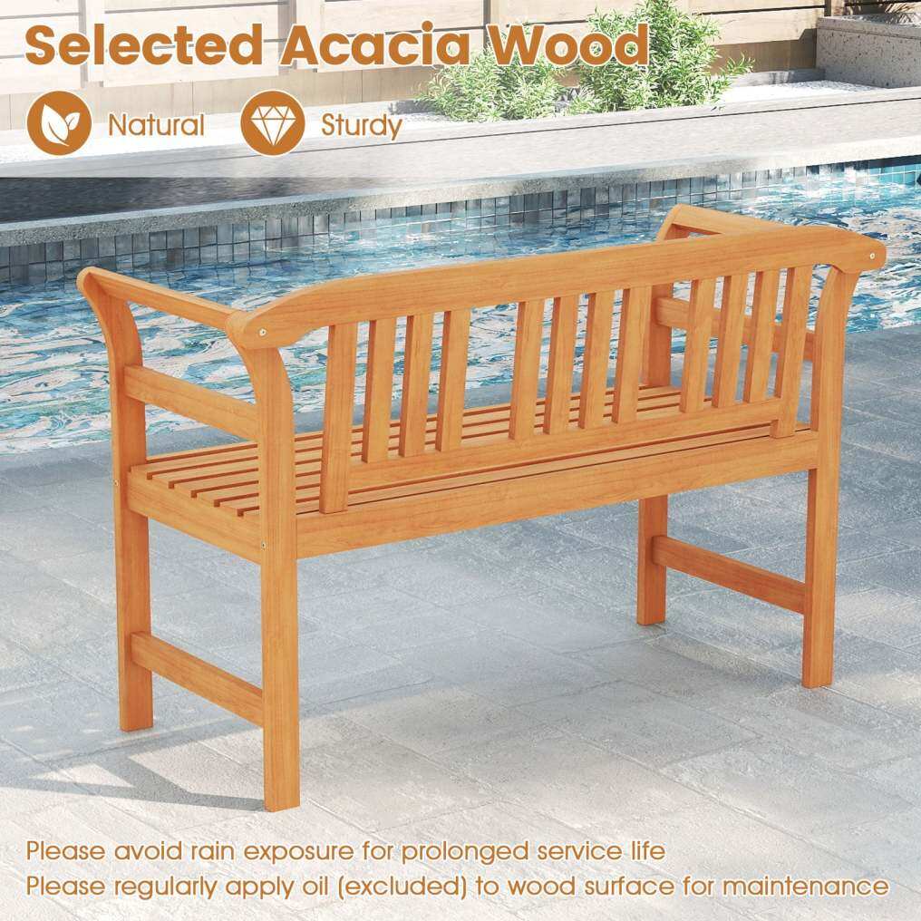 ● Reliable Acacia Wood Build: Made from high-quality acacia wood, the 2-person patio loveseat promises lasting performance. Note: Please regularly apply oil (not included) to wood surface for maintenance. Please avoid rain exposure for prolonged service life.