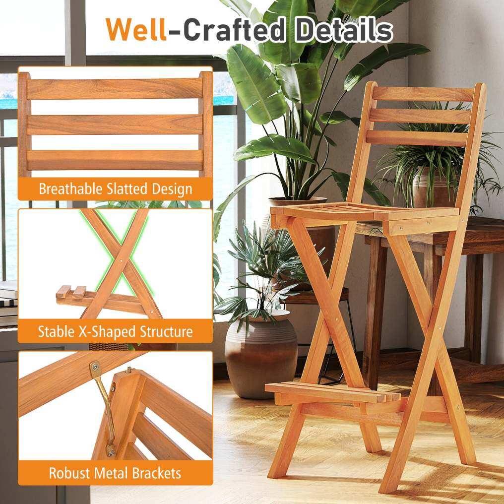 ● Solid Acacia Wood Build: Crafted from natural acacia wood, this folding barstool features high-strength build and splinter-free surface, ensuring long-lasting outdoor use. Note: Please oil (not included) the wood surface regularly.