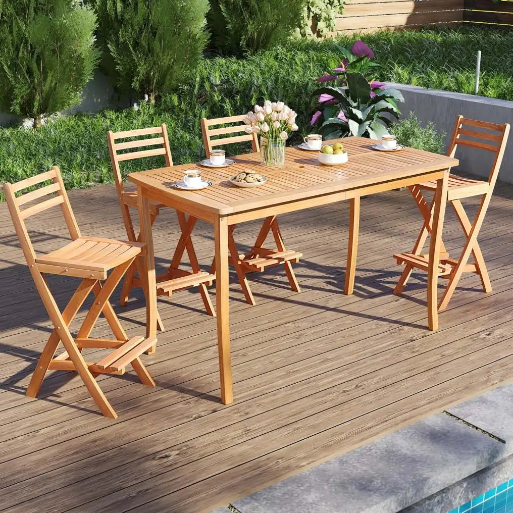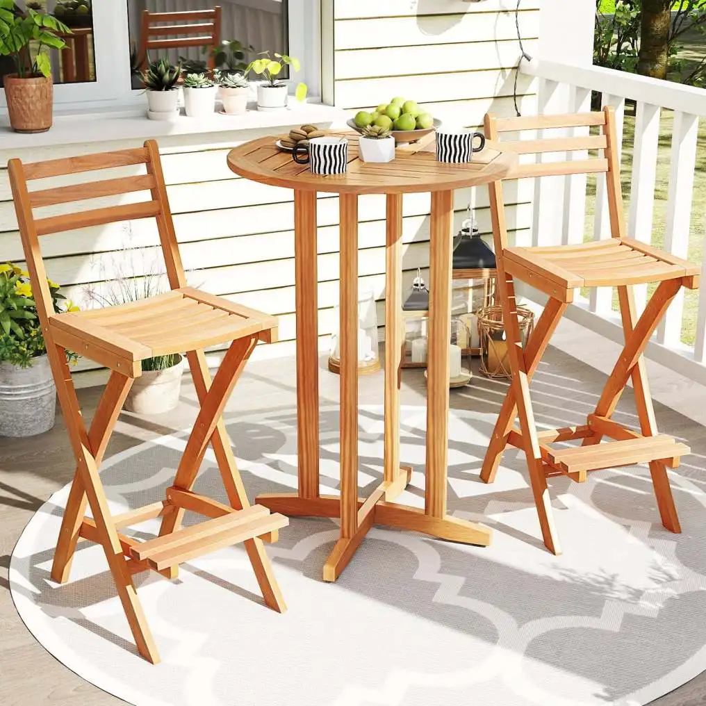 ● Solid Acacia Wood Build: Crafted from natural acacia wood, this folding barstool features high-strength build and splinter-free surface, ensuring long-lasting outdoor use. Note: Please oil (not included) the wood surface regularly.