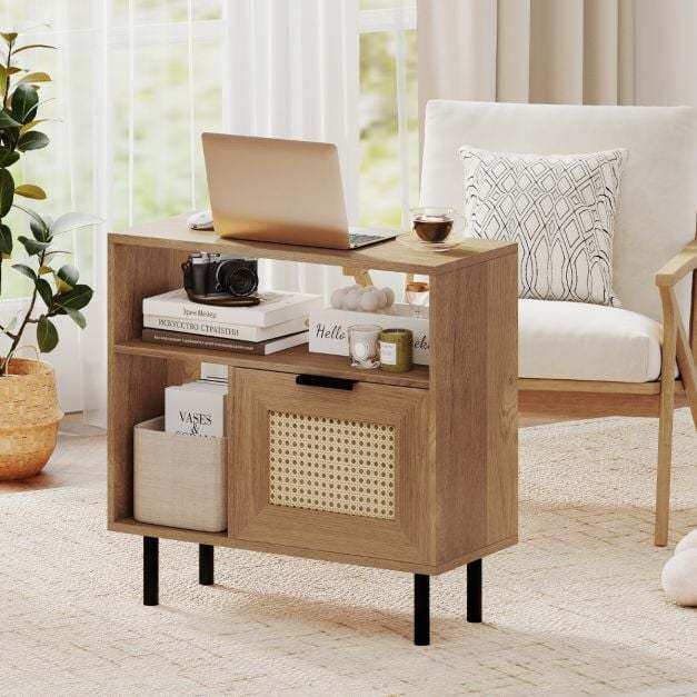 ● All-In-One Storage: Optimizing your living space is a breeze with the side end table. It boasts a wide top, 2 open compartments, and an enclosed cabinet, perfect for stowing away books, gadgets, and other essentials.
