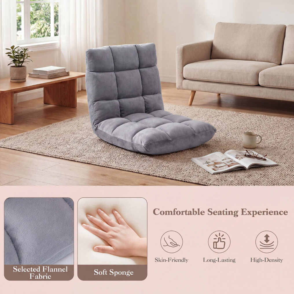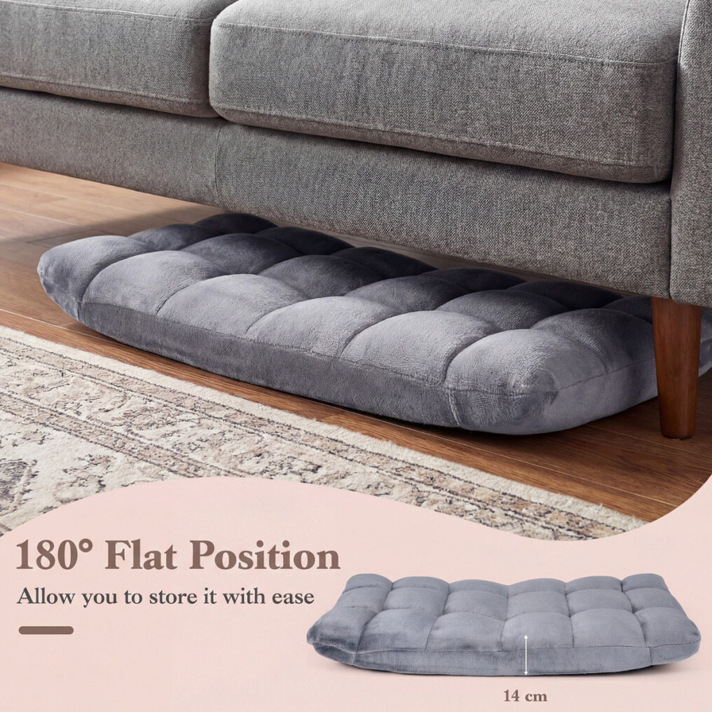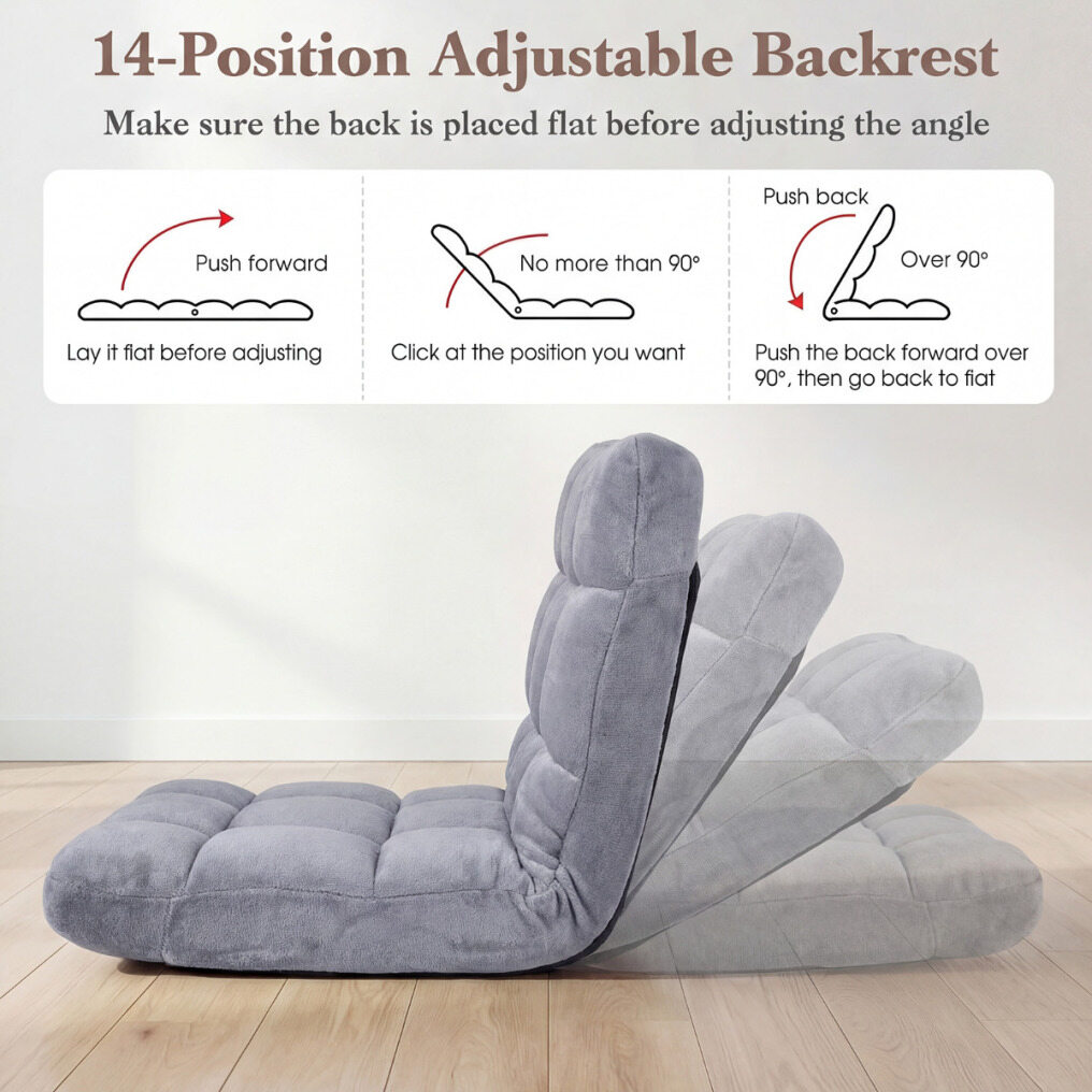 ● Multi-purpose Use and Easy Storage: Whether you're reading, playing games, watching TV, or meditating, the floor chair will provide a comfortable and soft seat for you. 14-position backrest offers different angles, suitable for different occasions. Thanks to its folding function, the chair can be easily flatted to store under the bed or tall couch, saving much space.