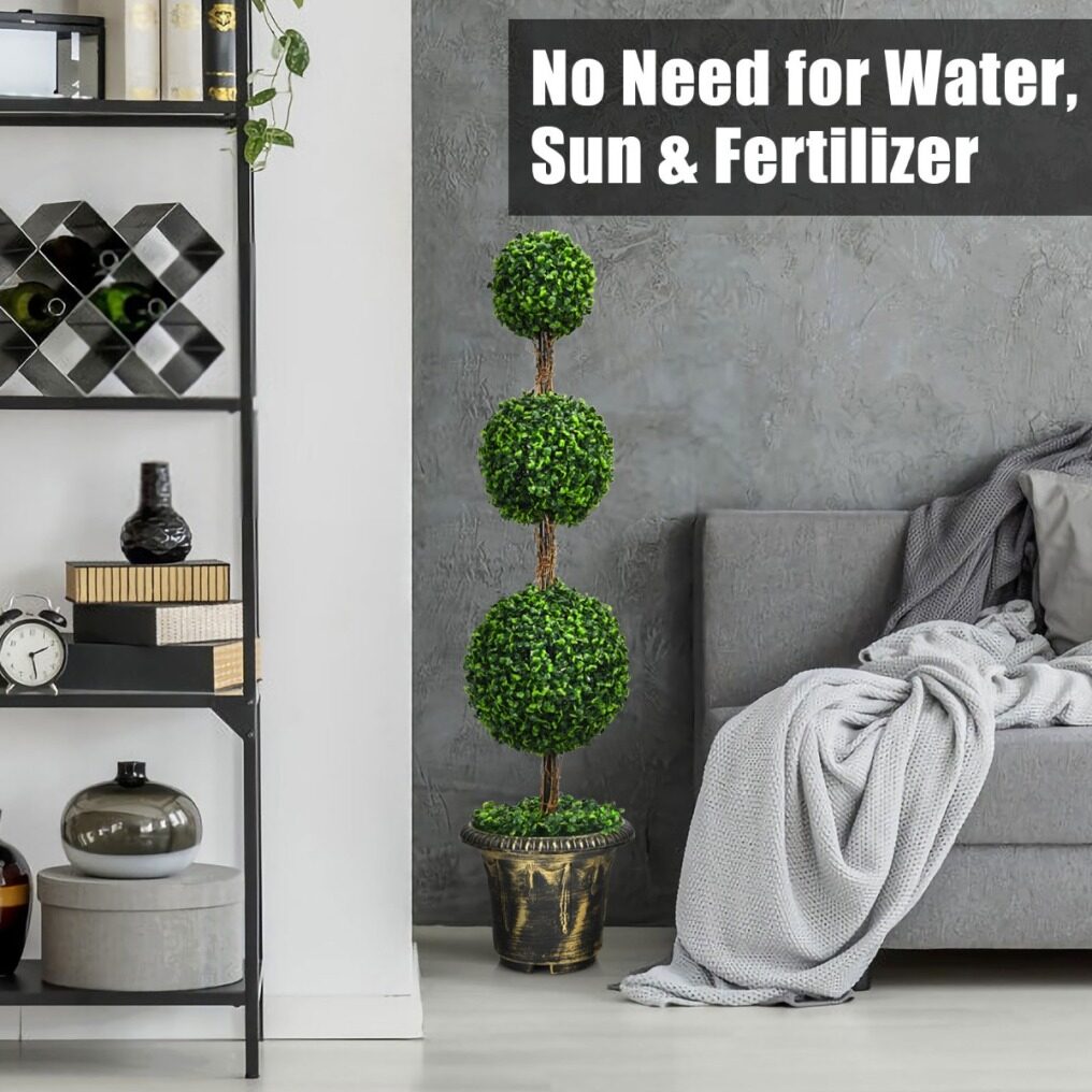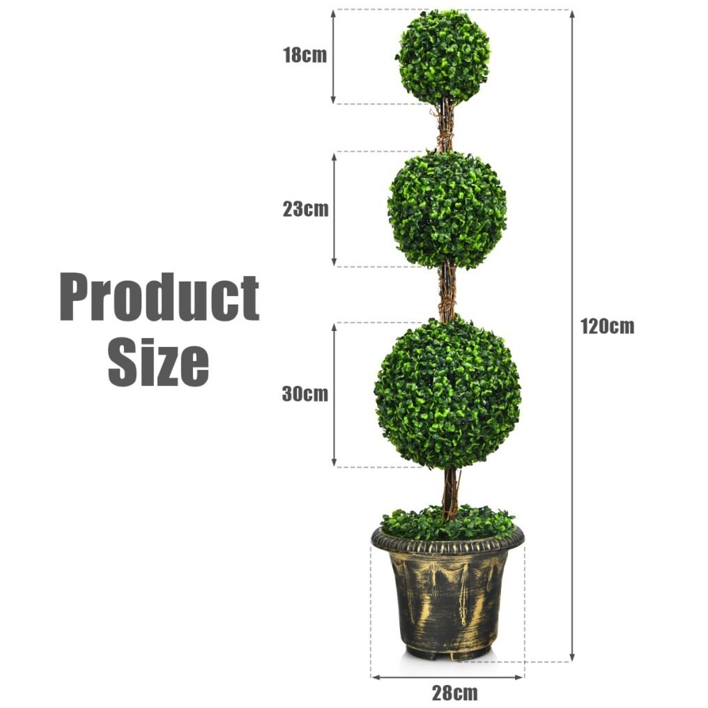 The 120cm triple-ball artificial tree, with its vibrant green leaves and solid wood rattan, is so lifelike. You can't even tell it apart from the real thing. In order to provide fresh and green views throughout the year, the artificial tree uses quality PE leaves. Dense foliage and vivid colors convey a touch of green and nature, while solid wood vines add a touch of nature. There is no need to worry about its quality. PE leaves are odourless and non-toxic to use. To make it more durable, the decorative pot is filled with cement to ensure overall stability and avoid slipping. In addition, it is the perfect indoor and outdoor decoration for homes, offices, balconies, gardens, etc. UV and waterproof design, you can rest assured that it is freely placed outdoors. This artificial tree is exactly what you want.