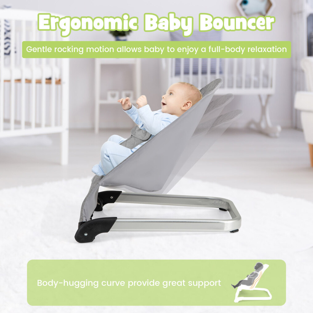 ● Comfortable Bouncing Experience: Our baby bouncer can rock upward and downward according to your baby’s natural movements, allowing for a cozy and smooth bouncing experience. Besides, the ergonomic seat offers great support for your baby’s head, neck, and back. Recommended ages: 0-6 months old.