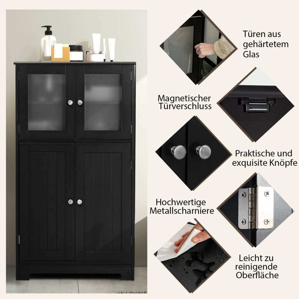 Easy assembly and cleaning: This floor cabinet comes complete with all necessary accessories and detailed instructions for quick and easy assembly. The lacquered surface is also smooth, waterproof, and therefore easy to clean.