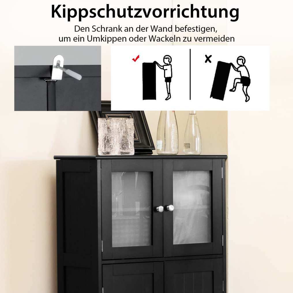 Safe and well-designed: The bathroom cabinet features an anti-tip device on the back, ensuring safe use. The round handles and magnets allow for easy opening and closing of the doors.