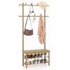 ● Generous Storage Capacity: The bamboo coat rack features 2 hanging rods, 11 round hooks that prevent unsightly marks on clothes, and 2 spacious open shelves. Also, the 3" bottom clearance perfectly organizes your slippers.