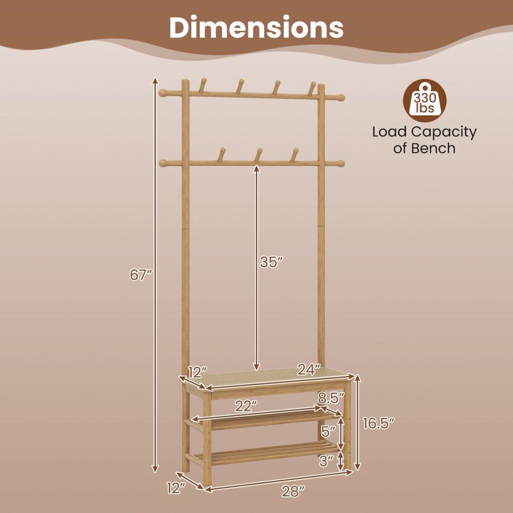● All-In-One Addition: Transform your home organization by cleverly combining a coat rack, shoe changing bench, and shoe storage rack in one. This multifunctional piece helps you to simplify your daily routine and eliminate clutter.