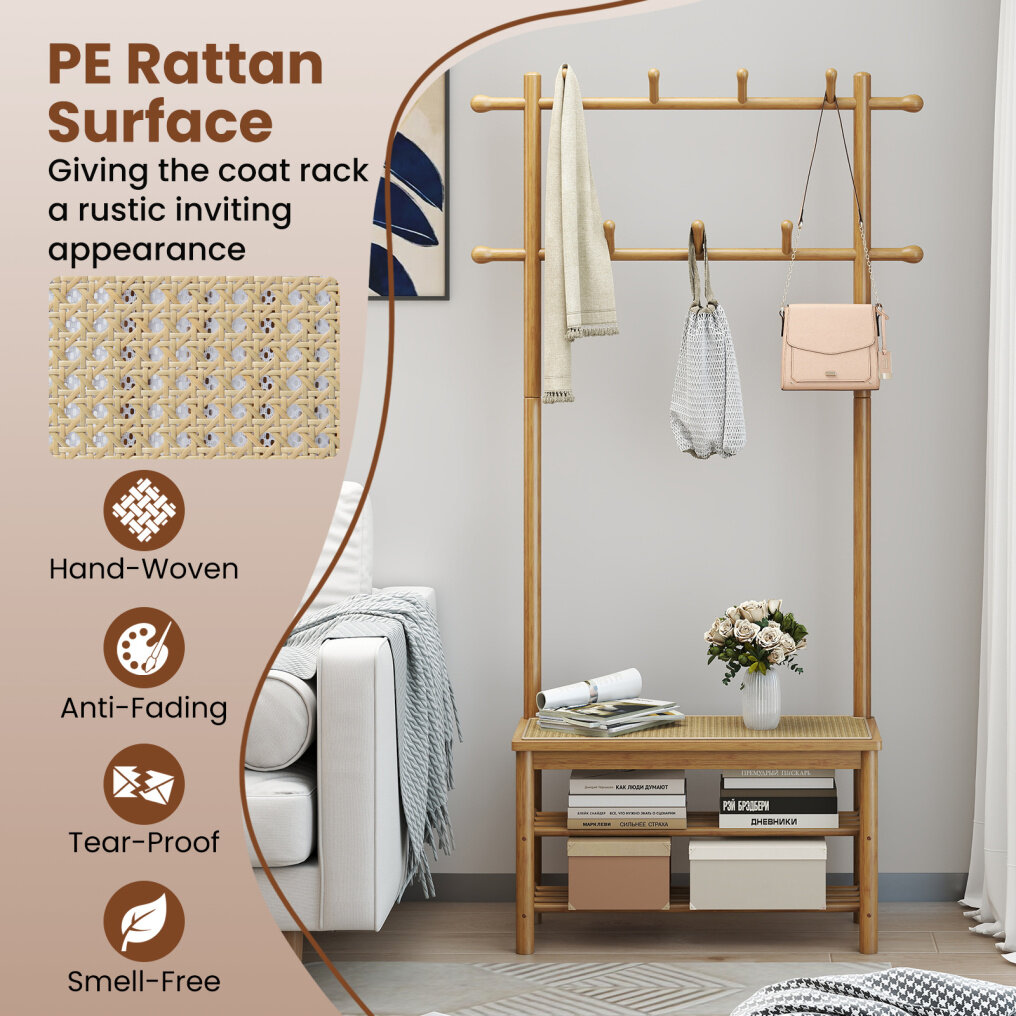 ● Rustic PE Rattan: The entryway bench features meticulously hand-woven PE rattan that delivers a distinctive look and long-lasting performance: it is anti-fading, tear-proof, and smell-free, keeping its fresh style year after year.